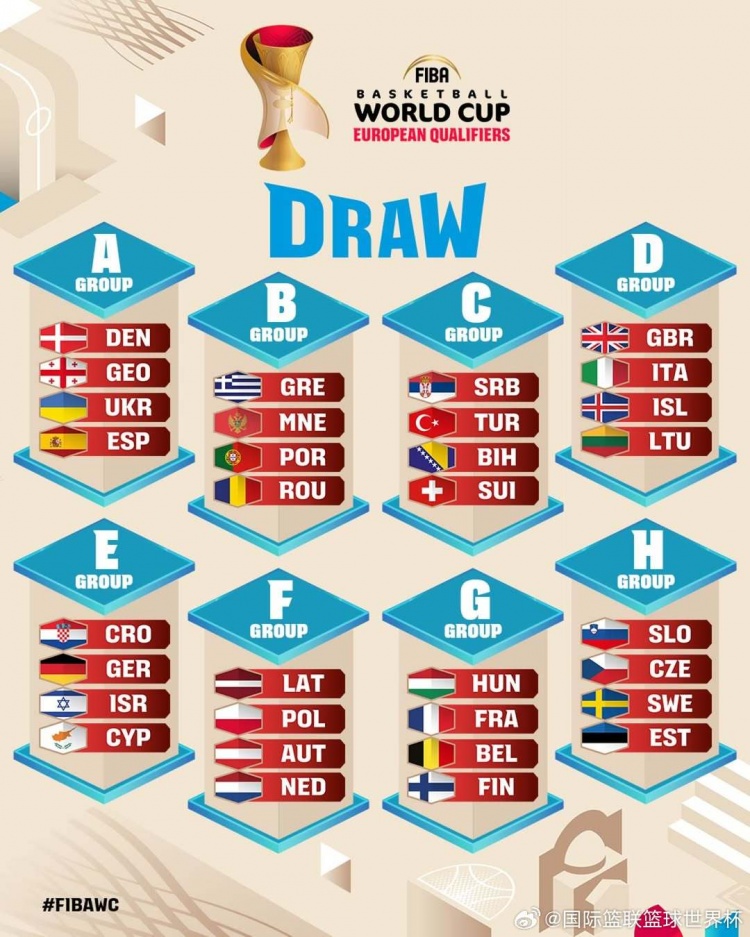 8月21日讯 2027年卡塔尔男篮世界杯预选赛欧洲区资格赛结束,世预赛欧洲区分组出炉。